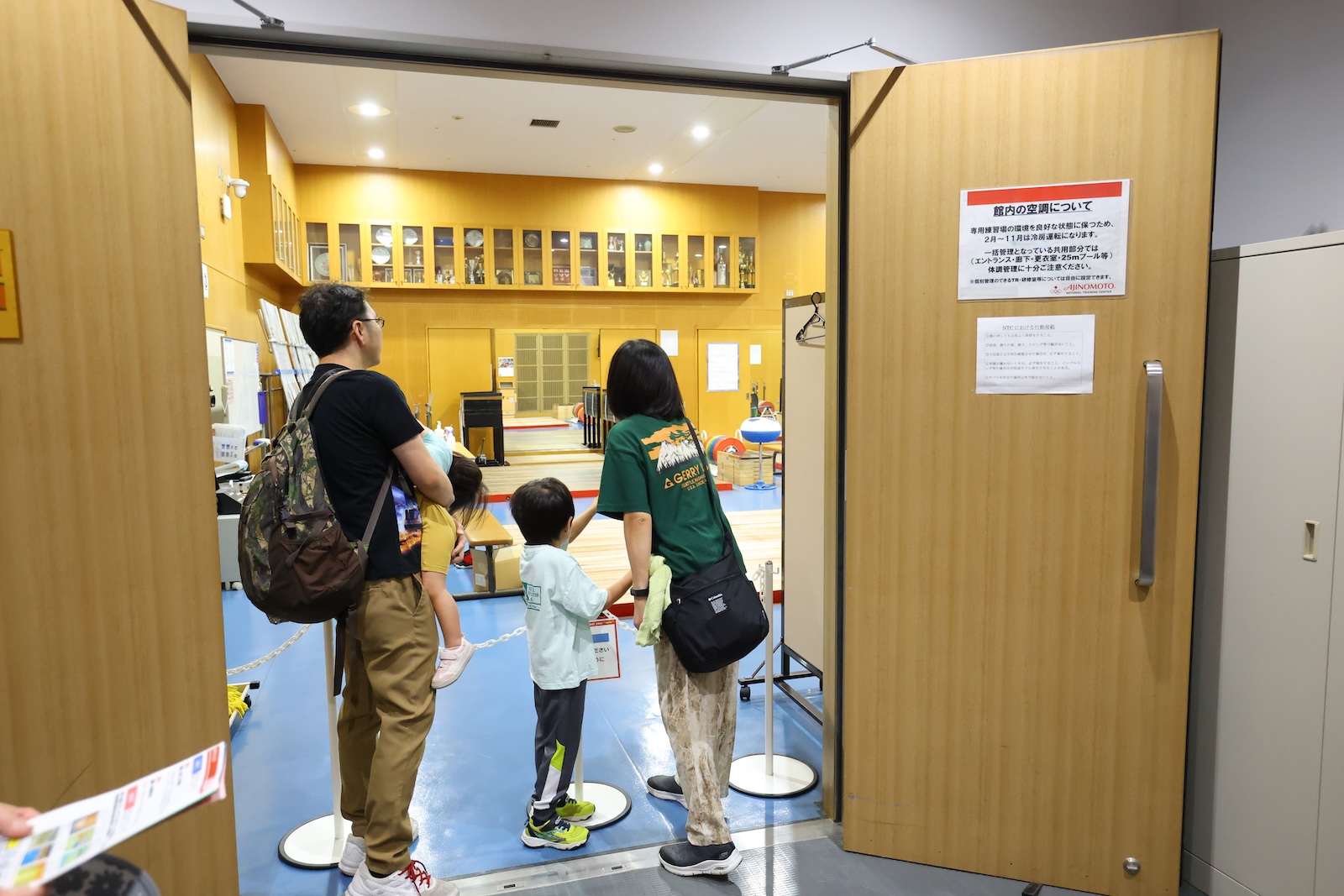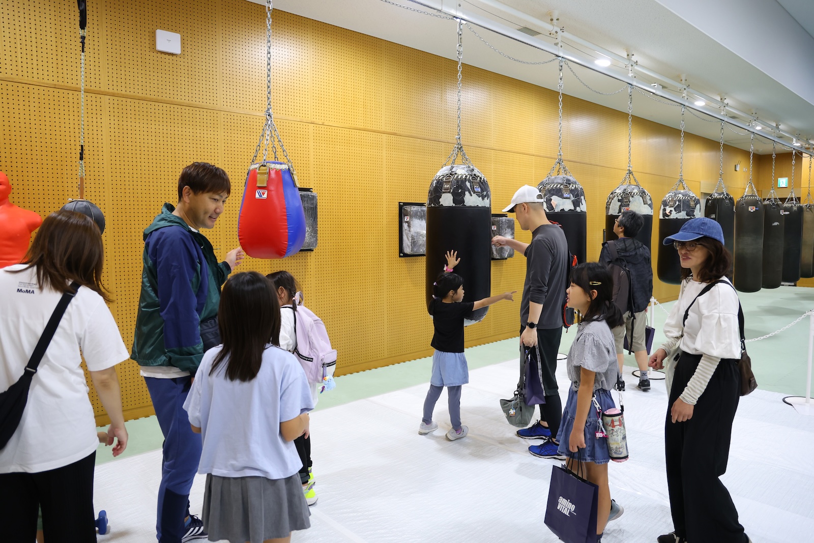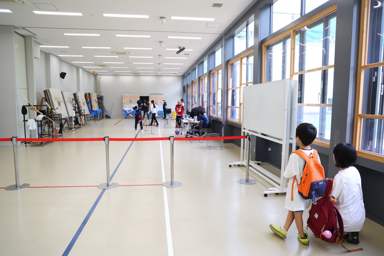 アスリートの練習風景や競技用具を間近で見学することができました。弓の引き方や矢の飛ぶ様子に目を輝かせながら、競技の迫力や美しさを感じ、静かにワクワクするひとときを楽しみました。