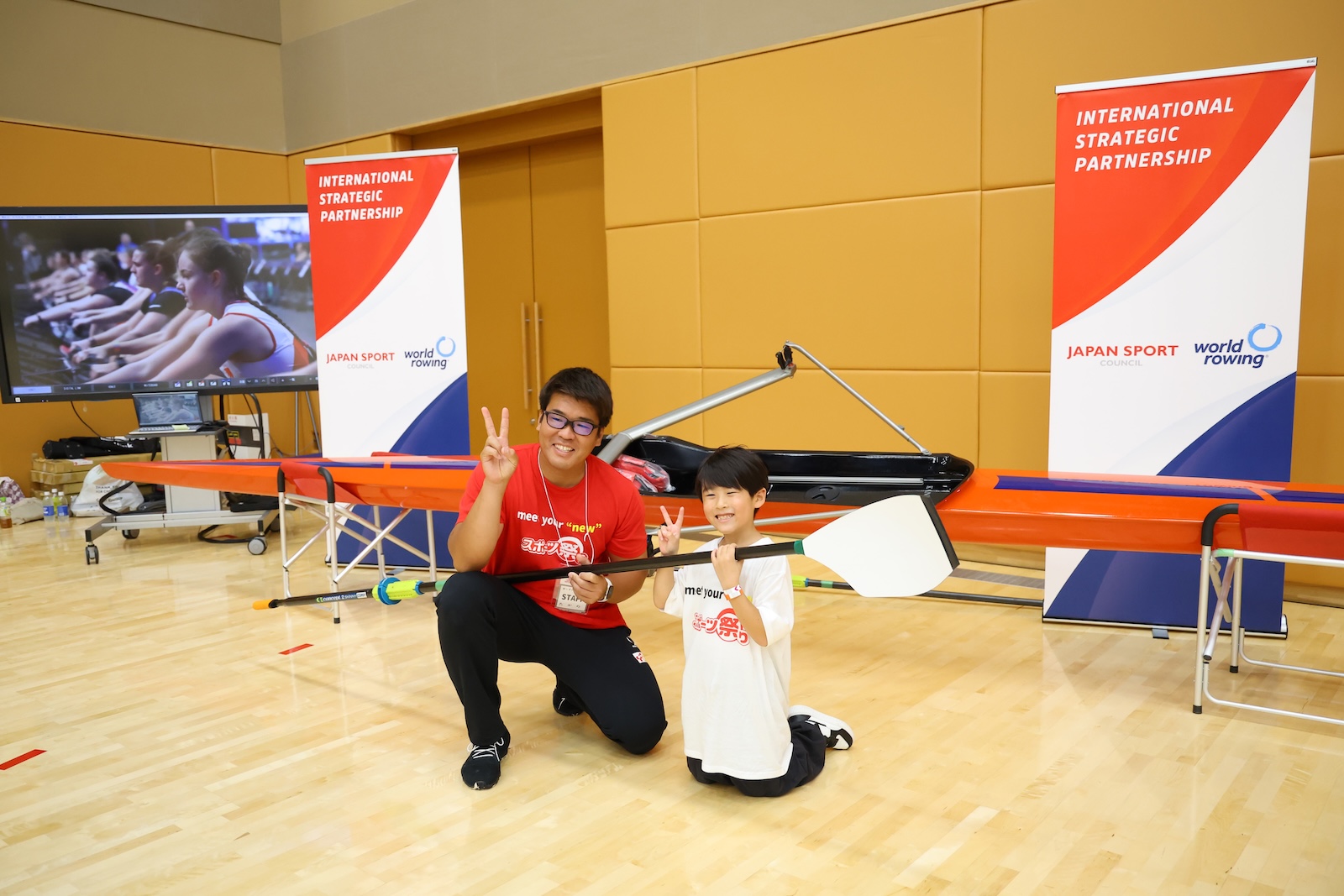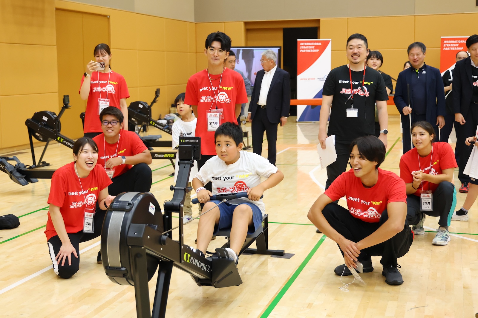 ローエルゴというマシンを使い、インドアローイング体験とバーチャルローイング体験を実施。初めて触れる参加者も多く熱心に漕ぎました。競技で使用されるボートやPR展示も間近に見学でき、ローイングの魅力を肌で感じながら、笑顔あふれる時間を楽しみました。