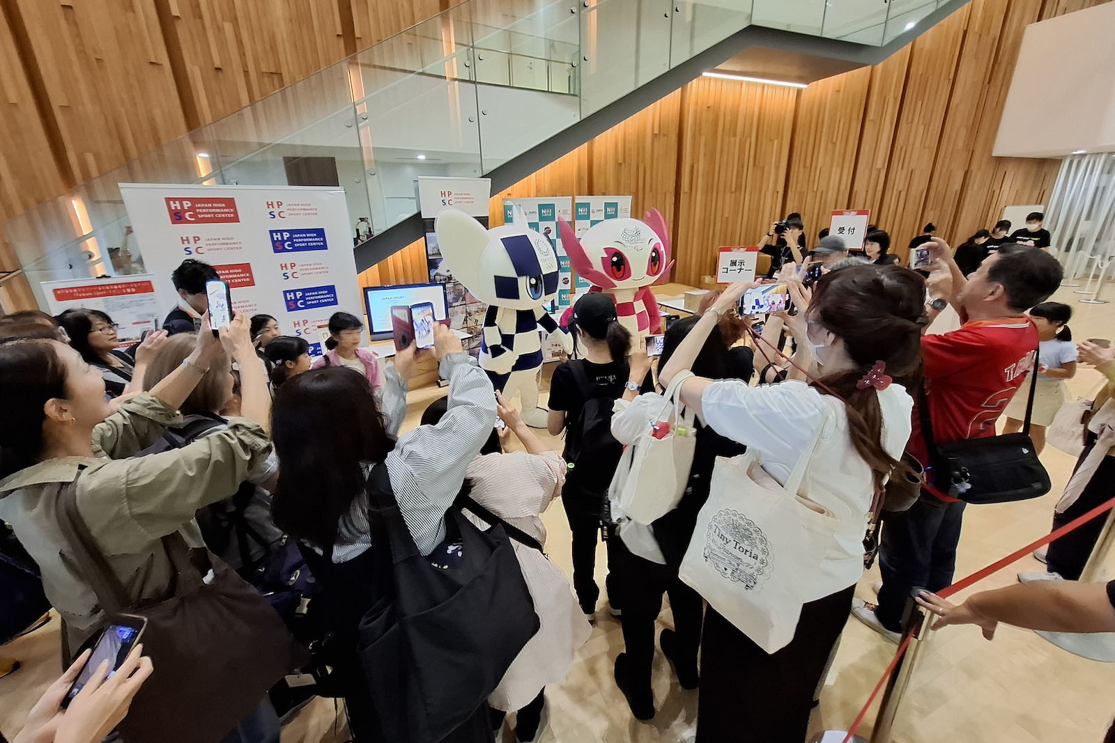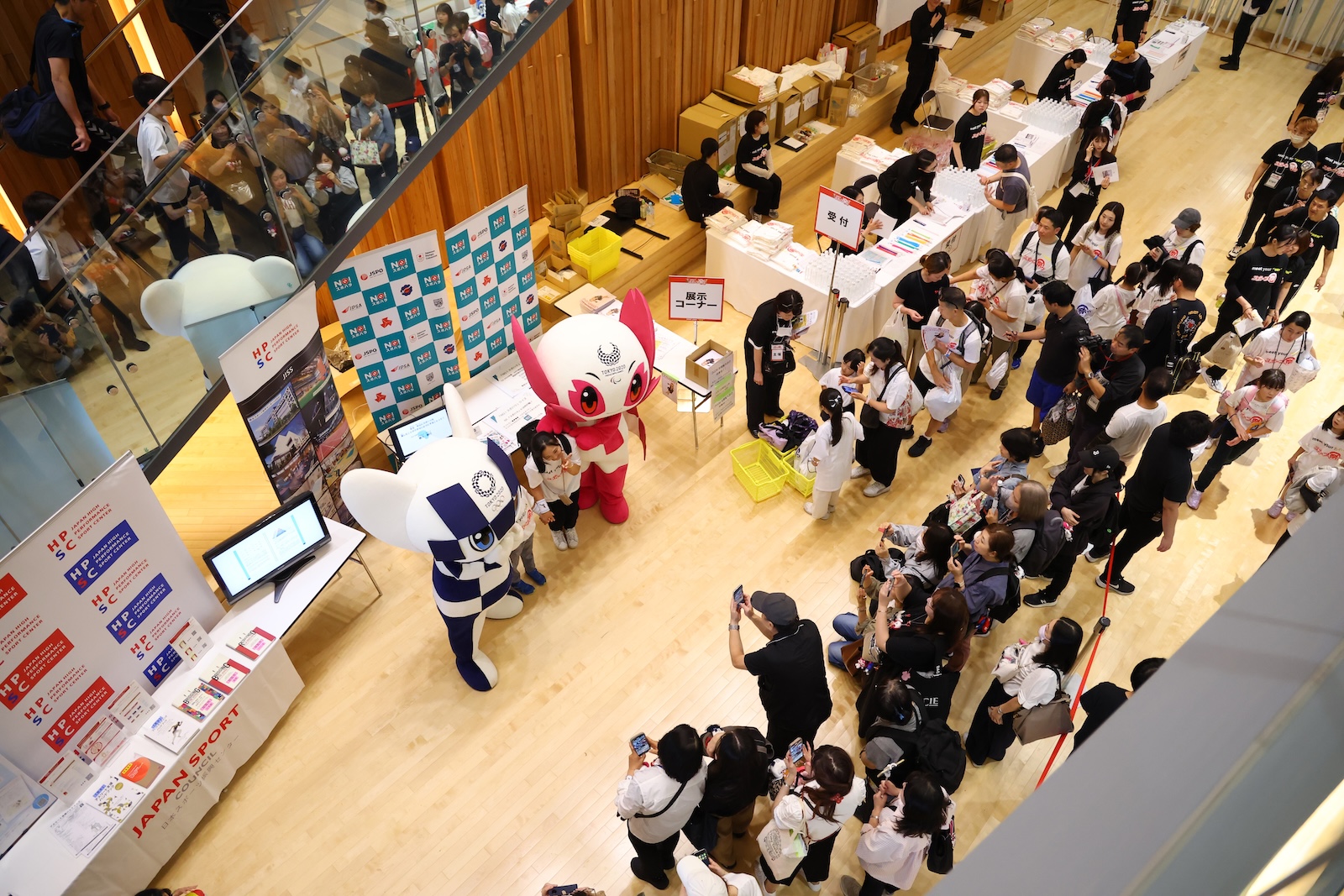 東京2020オリンピックマスコットの「ミライトワ」、パラリンピックマスコットの「ソメイティ」がスペシャル登場し、会場は一気に笑顔であふれました。たくさんの来場者とふれあい、ハイタッチや記念撮影で交流を楽しむ様子に、会場全体が温かく賑やかな雰囲気に包まれました。