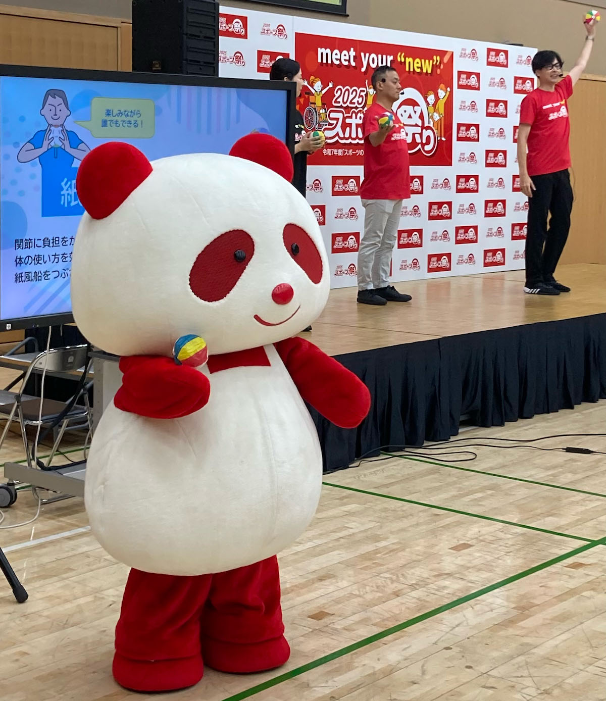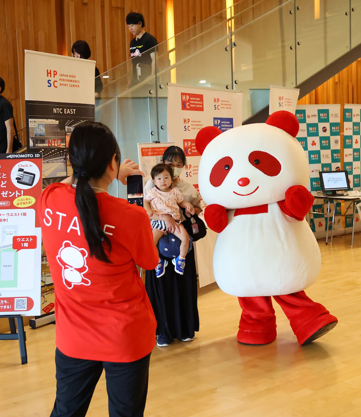 味の素のグローバルアンバサダー、アジパンダ®が登場し、開会行事や勝ち飯®教室、味の素NTC各所で来場者と交流しました。小中学生にも大人気で、ハイタッチや記念撮影を楽しむ子どもたちの笑顔が会場いっぱいに広がり、温かくにぎやかな時間となりました。