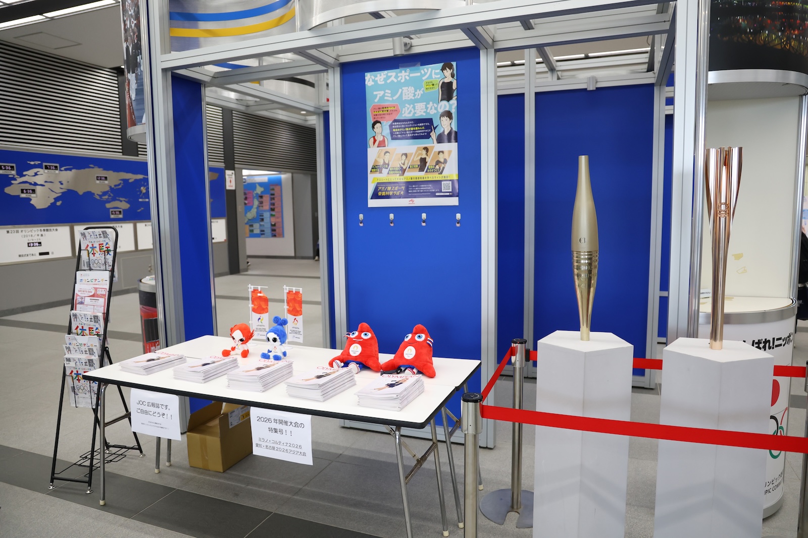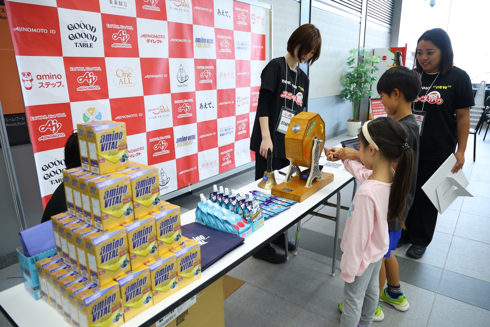 オリンピックのトーチ展示(日本オリンピック委員会)では普段はなかなか間近で見ることのできない展示物に立ち止まってじっくりと見入る来場者の姿も見られ、スポーツへの理解と関心を深める機会となりました。味の素製品が当たる展示ブース(味の素株式会社)ではお子様が積極的にガラポン抽選会に参加される姿が目立ちました。